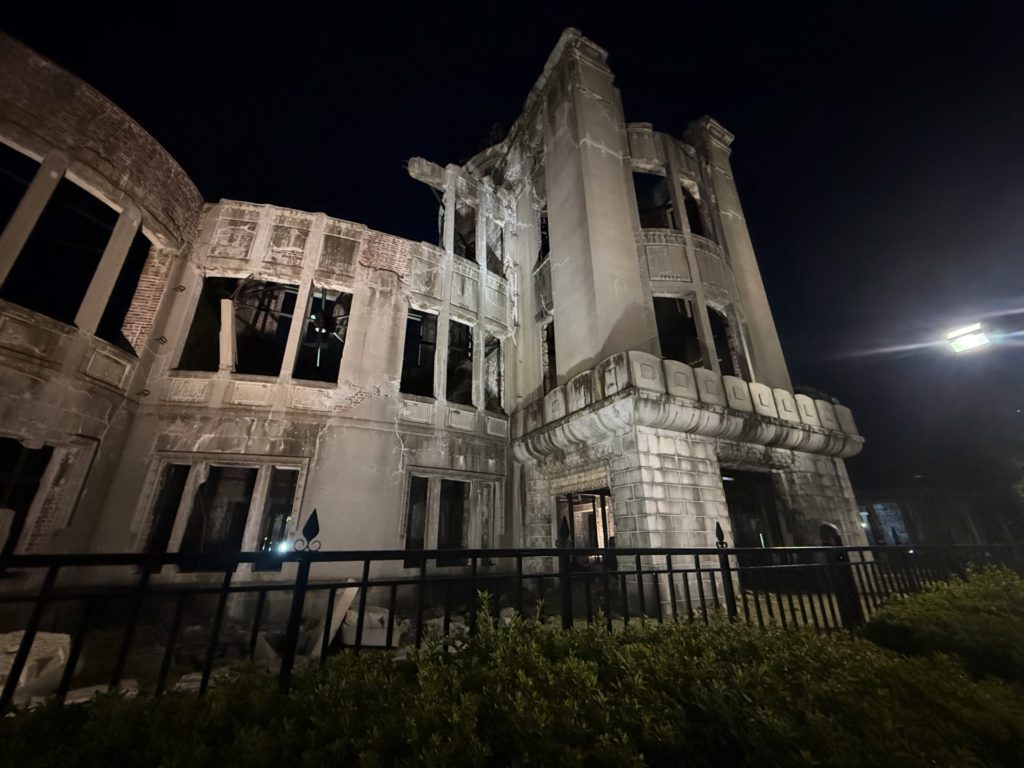 夜の原爆ドームは昼とは違い、静かで考えさせられる雰囲気があります。